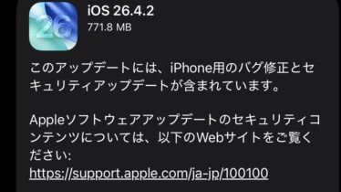 本日AppleがiOS26.4.2の配信を開始しましたが、併せて旧モデル向けにもアップデートの配信を開始しています。iPhone XS以降以降のモデル向けにiOS18.7.8/iPadOS18.7.8が配信されており、バグ修正とセキュリティ...