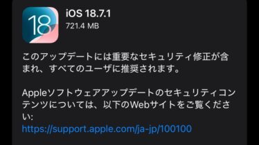 Apple Tips iOS18.7.1が配信開始!全ユーザーに推奨!1件の重要なセキュリティが修正! 本日AppleがiPhone XS以降のiPhone向けにiOS18.7を、iPad向けにiPadOS18.7の配信を開始しました。今回のアップデートには重要なセキュリティ修正が含まれ、すべてのユーザに推奨されています。なお、修正された脆弱... 2025.09.30 Apple Tipsipadiphone