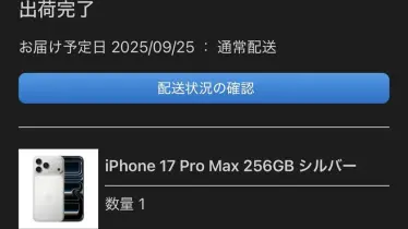 iphone 「え、もう届くの!?」iPhone 17 Pro Max、予定日より1週間早いお届け! 準備ゼロで焦った話 先日予約したiPhone 17 Pro Max、21時3分に予約完了したものの、配送予定日は2025年10月2日以降となっていました。そのため、まだまだ余裕があると思いのんきに過ごしていましたが、本日突然「出荷が完了しました。9/25到着予... 2025.09.23 iphone