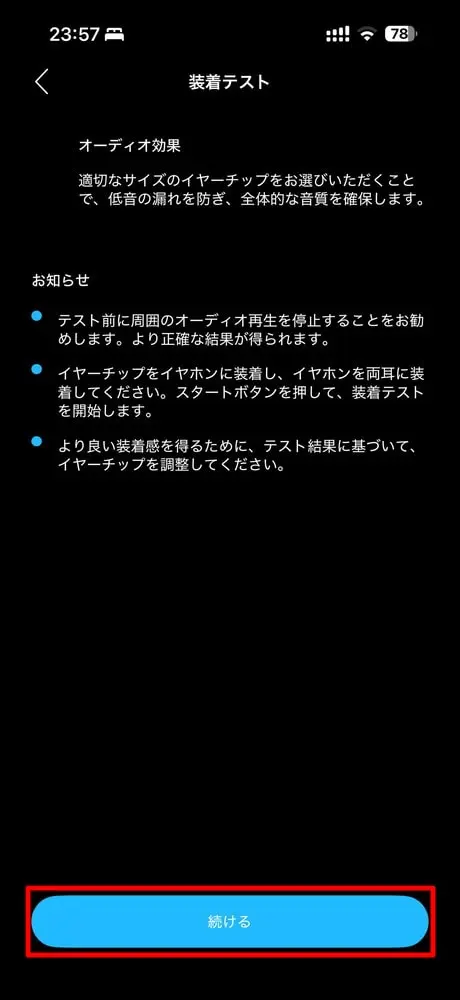 - イヤーピースフィットテスト