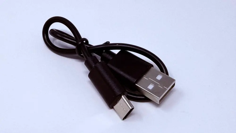 付属のケーブルはUSB-A to Cの短めのケーブル。昨今はスマホの充電器もUSB-Cが多いので、そろそろUSB-C to Cを採用してもよいかも?ただ、スマホ用の充電ケーブルの流用も可能なので、そこまで気にする必要はないでしょう。