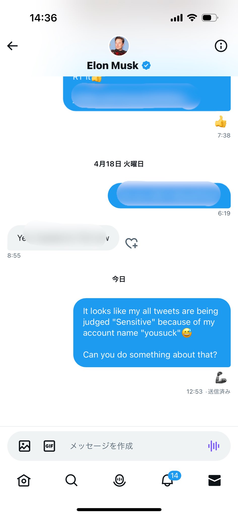 イーロン・マスクさんから返信も返ってきたようですよ。